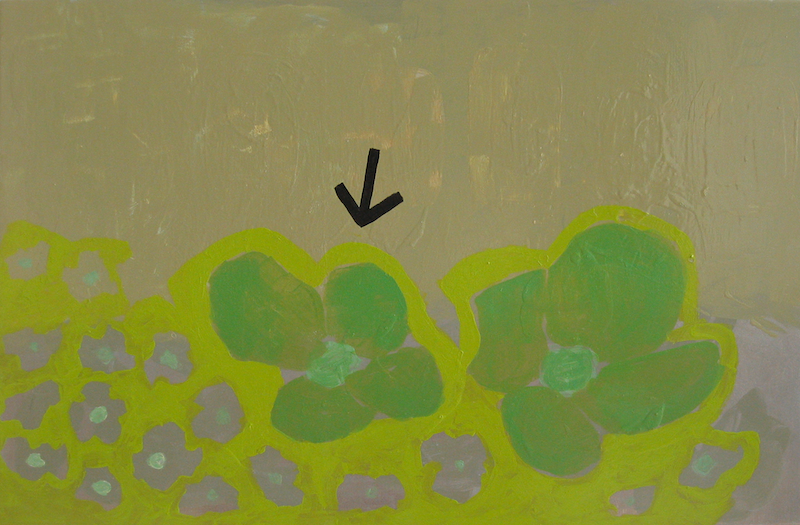 Name: “Limited confusion series or everything i like to think about and want in my art work – Polymorphic flowers of a specific green with absolute indicator over relative green concealor” 2000 - enamel on alluminium - 46x30cm.