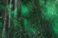 2010, Coral, vintage prints of Japanese wooden Buddhist sculpture, silver photo emulsion very loosely displaying the silhouette of different animals such as a squirrl, smoked bronze acrylic, high-output white LED, electronics