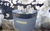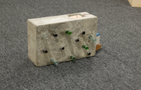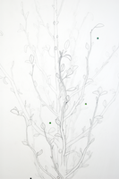 A block of concete with bottles embeded in it sits on the floor at a distance of up to 75 feet from a drawing of a tree hung on the wall. The block is fashioned using an alternative building method that allows for light to be cheaply brought into a room via empty bottles. Inside one of the bottles, a green laser shines out and crosses the space between the block and the drawing. The laser enters a hole in the drawing and is split into many beams behind the drawing. The beams are then directed back out through the drawing via small mirrors and holes appearing as small green lights around the tree. If a viewer walks between the drawing and the block, the beam is interrupted and the lights in the tree go out.