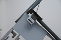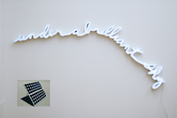 The sculpture is connected with a long cord to a solar panel that is placed outdoors. The LED's are very sensitive to minute fluctuations in electricity coming from the panel. The intensity of light given off by the LED's is a direct representation of the sunlight falling on the solar panel.