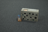 This proposed sculpture is designed to be installed in a public space either indoors or out. It functions as a piece of monumental modernist sculpture and as a grill suitable for cooking your favorite piece of meat. Viewers are invited to bring their own meat, or perhaps the sponsoring venue would provide burgers.