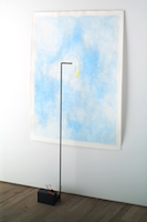 untitled (detail), 2005 – steel, black light, cotton athletic t-shirt, battery, electronics, and watercolor on paper – 152,5x152,5 cm (metal) 157,5x101,5 cm (watercolor).