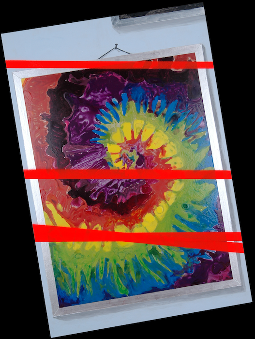 Name: "tye dye", 2007, enamel on aluminum, 24" x 16", painting is meant to be hung at an angle as shown