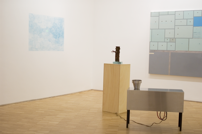 • Name: “Handmade American Paranoia n°3 with practical independence, or why we aspire to be like our neighbors mind the threesome” (detail)2005 - steel, wood, polystyrene, glass, chainsaw, alternator, car battery, wire, green plumped laser and misc. electronics - 71x83x30 cm - pedestal: 123x35x37 cm