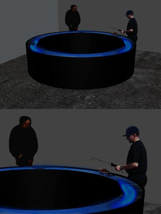 Name: untilted (grill) illustration for proposed indoor or outdoor work (see first image for explanatory text), 2001, 15' x 15' x 30", Enameled steel, propane gas, and grillable items