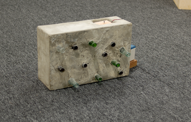 Name: Untitled (detail, see first image for explanatory text), 2004 - graphite on paper, concrete laser, beer bottles, battery, wood, motors, mirrors and misc. electronics - variable dimensions.