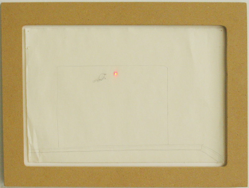 Caption: 2000, Cardboard boxes, paint, ceramic mgs, MDF, laser, and graphite on paper