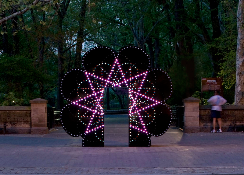 Name: "Our Starry Night", 2008, Powder-coated aluminum, metal detector, LED's, electronics and hardware, 12' x 11' x 40" , installation view Central Park, NY