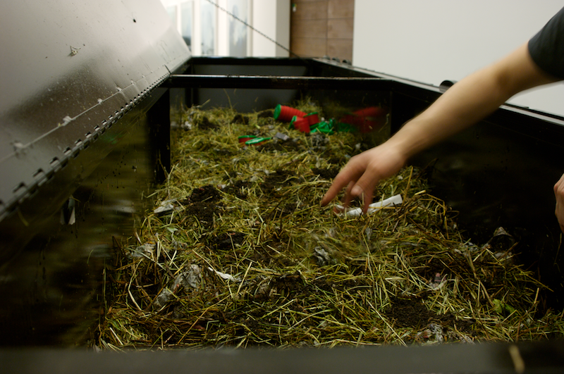 Name: "Birth of the Cool" (detail), 2008, Enameled steel, 20,000 red wiggler worms, shredded newspaper, hay, vegetable and fruit waste from the museum's cafe, tools and materials for upkeep of the work, 12' x 3' x 4'